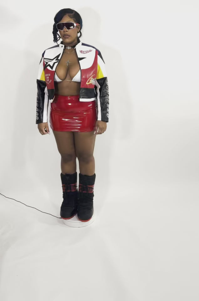 - Constructed in vegan poly leather. This jacket is a staple to any wardrobe.